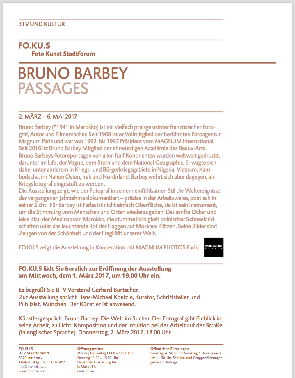 EXHIBITION Bruno Barbey : Passages